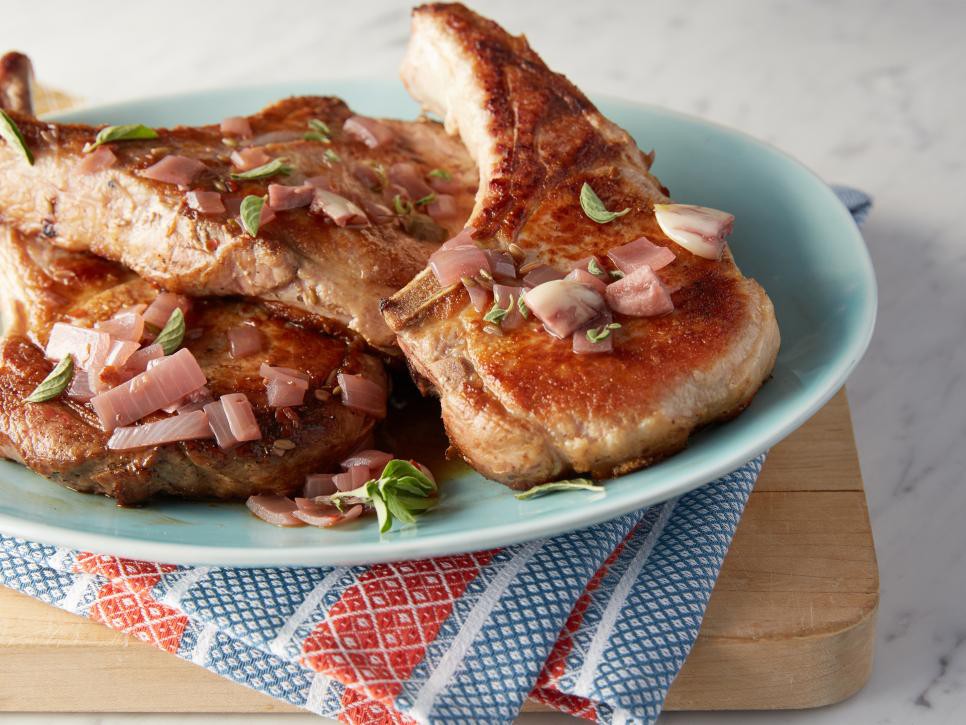 Finish browned, caramelized pork chops in a quick pan sauce made with red wine, chicken stock and tomato paste for an easy, flavor-packed main dish ready in 30 minutes flat.